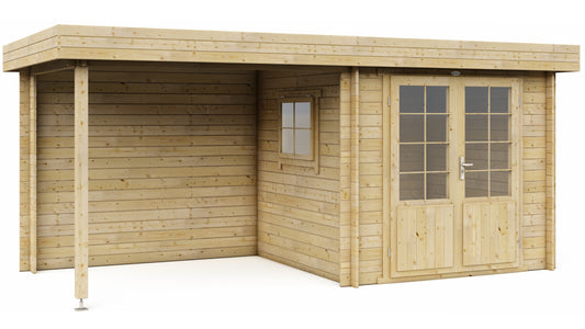 Tuinhuis met overkapping Interflex 2525Z – luxe tuinruimte voor opslag én ontspanning